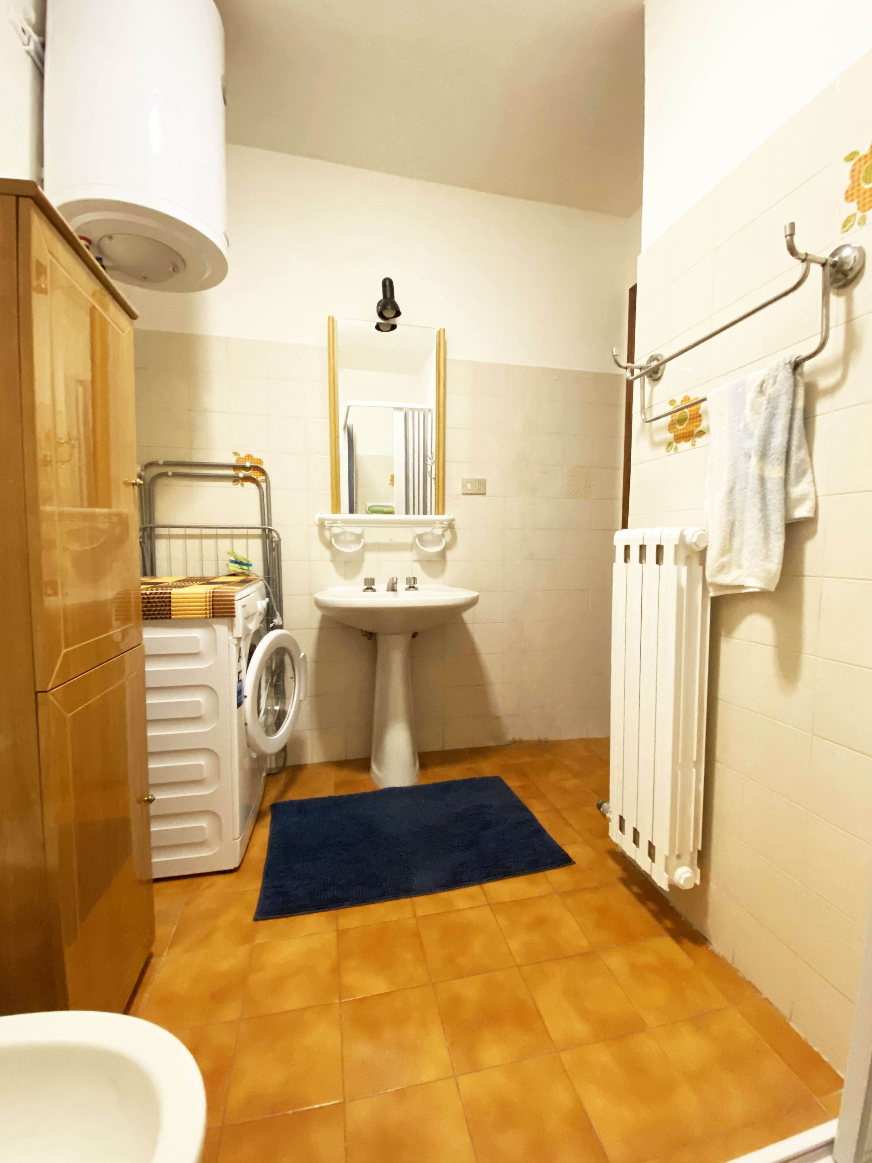 In zona centrale, comodo a tutti i servizi, alloggio di ingresso, soggiorno, cucinotto, camera matrimoniale, cameretta e servizio. Dal soggiorno si accede all'ampio e soleggiato terrazzo esposto a sud. Nell'autorimessa un box auto. Attrezzato per sei persone e disponibile solo per la locazione annuale.