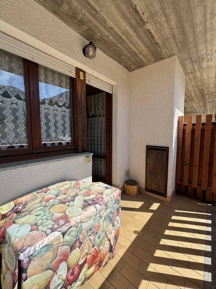 Dalla zona giorno si accede al un ampio balcone esposto a sud con un meraviglioso panorama sulle nostre montagne.