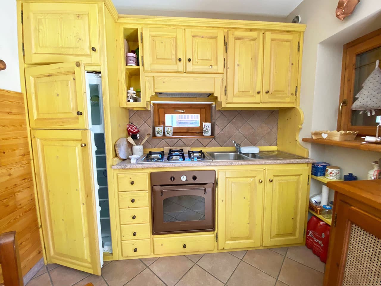 Bilocale molto accogliente al piano terra, situato sotto la pineta, composto d'entrata su soggiorno con angolo cottura e un camino per riscaldare l'atrmosfera dell'inverno, il tutto con l'uscita su un terrazzo soleggiato, camera da letto e un bagno dotato di lavatrice, con finestra, che affaccia su un altro piccolo terrazzino privato.