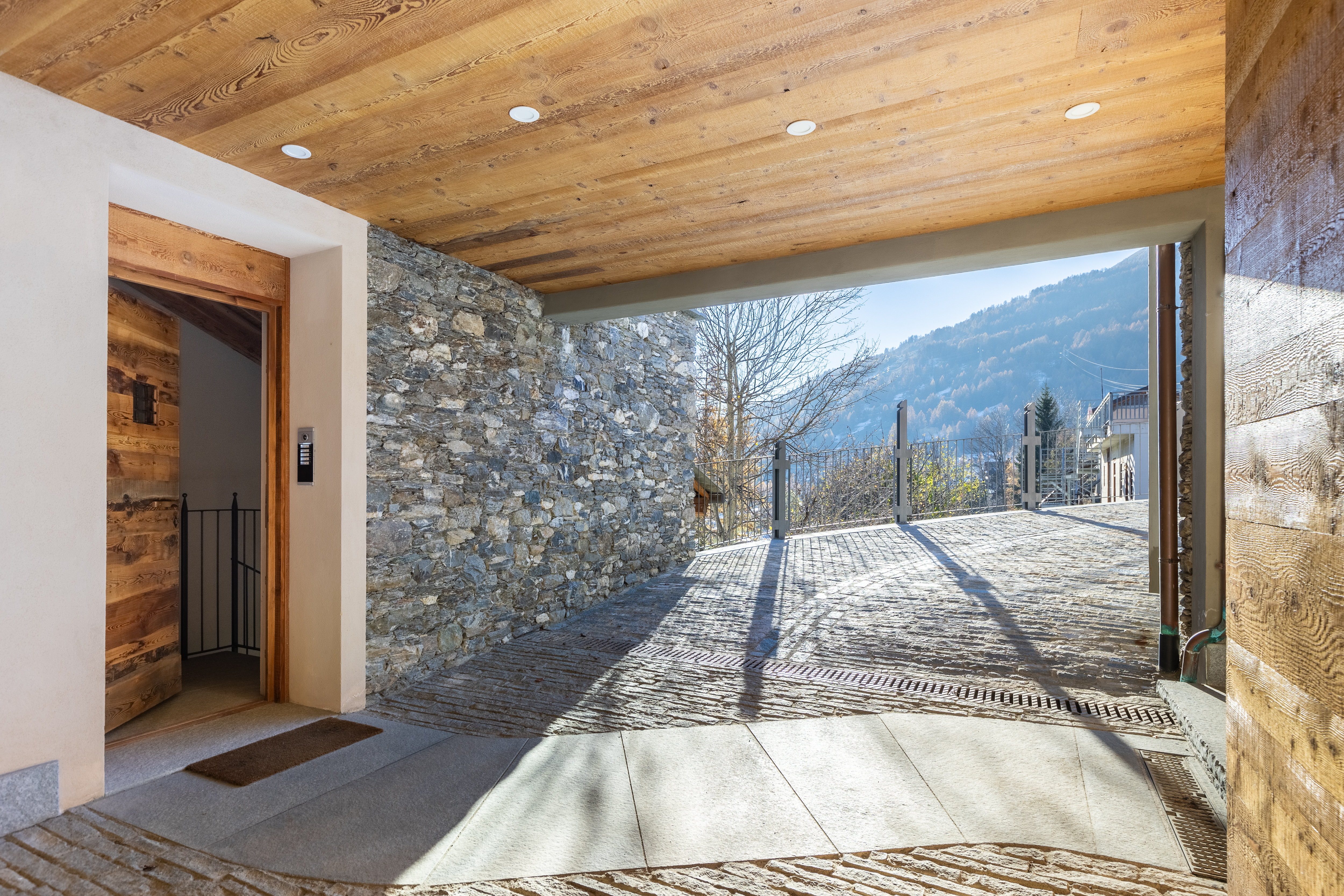Ogni appartamento è dotato di video citofono, presa tv satellitare, Wi-Fi, un comodo ski box e due posti auto, uno scoperto e uno coperto.
