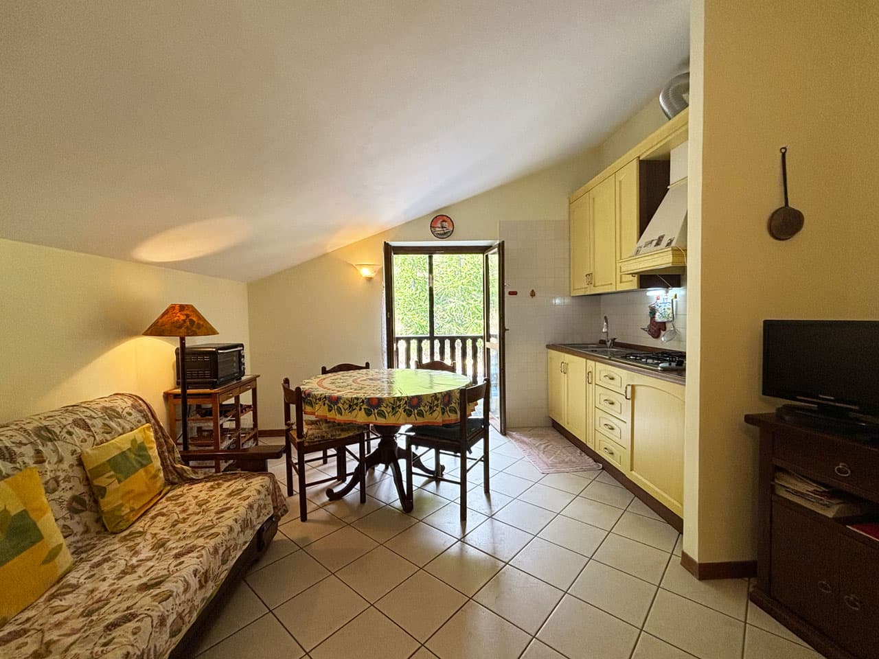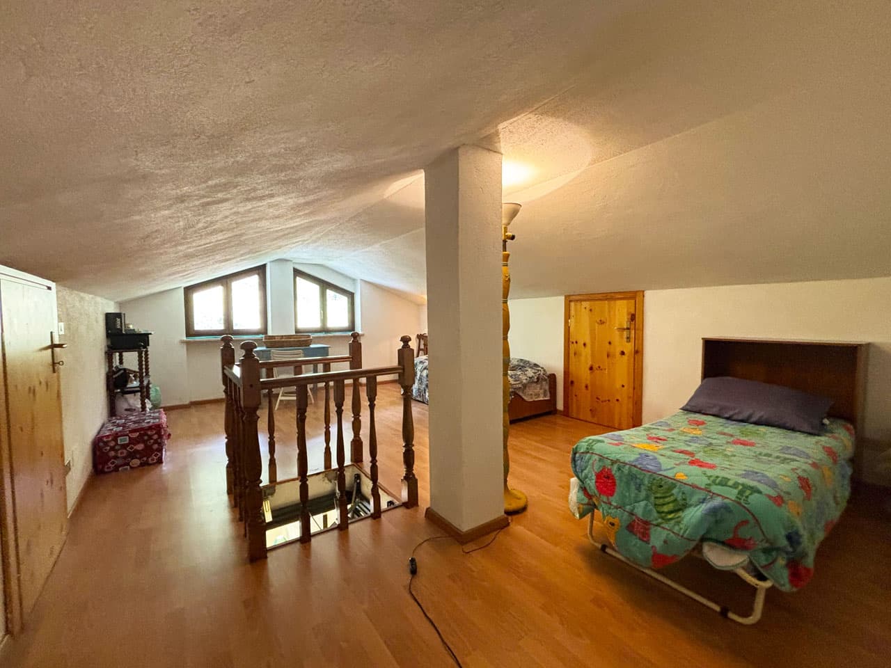 In palazzina di recente costruzione, alloggio al secondo ed ultimo piano così composto: ingresso, soggiorno con angolo cottura e balcone, disimpegno, bagno dotato di finestra e camera da letto matrimoniale oltre ad ampia zona sottotetto adibita come seconda camera o zona relax. L'appartamento è predisposto per un eventuale caminetto o stufa a legna in soggiorno. Il riscaldamento è del tipo semi-autonomo. L’immobile sarà ceduto completo dell’attuale arredamento.