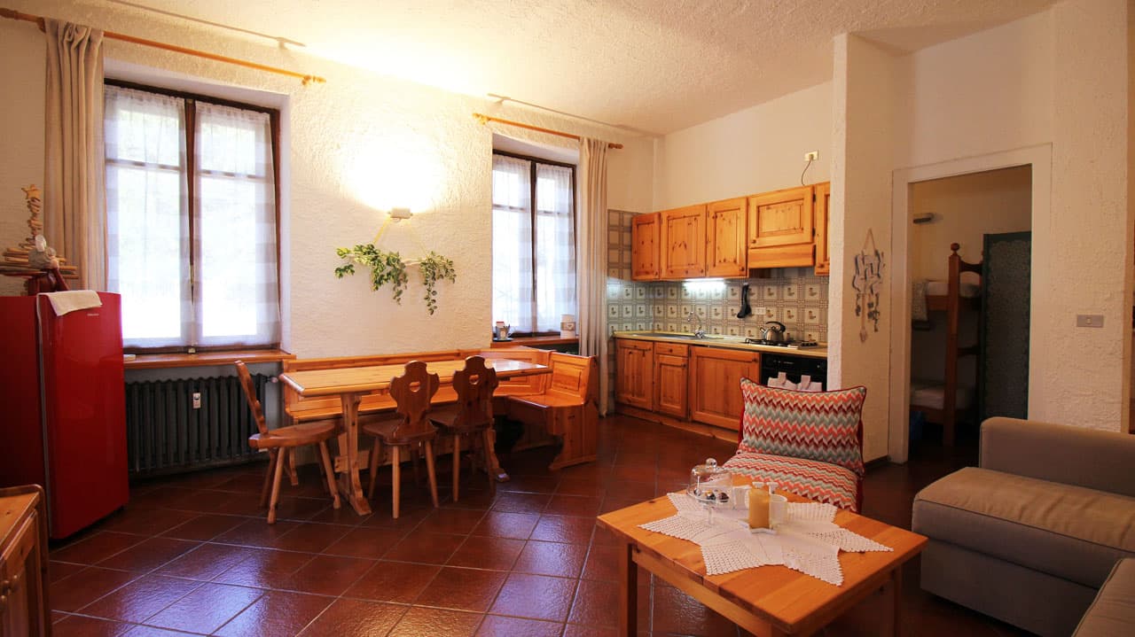 In zona centralissima, nella "Villa" storica di La Ruà costruita negli anni '30, rimodernata recentemente a formare un piccolo condomionio, comodo a tutti i servizi e circondato dal grande giardino condominiale, alloggio al piano terra composto da ingresso, ampio soggiorno con cucina a vista, camera da letto matrimoniale, cameretta e servizio. L'appartamento è molto luminoso, in quanto tutti gli ambienti sono dotati di finestre e porte-finestre che danno l'accesso ai due balconi, inoltre la casa dispone di alcune parti comuni adibite a locali deposito e parcheggio esterno ad uso esclusivo.