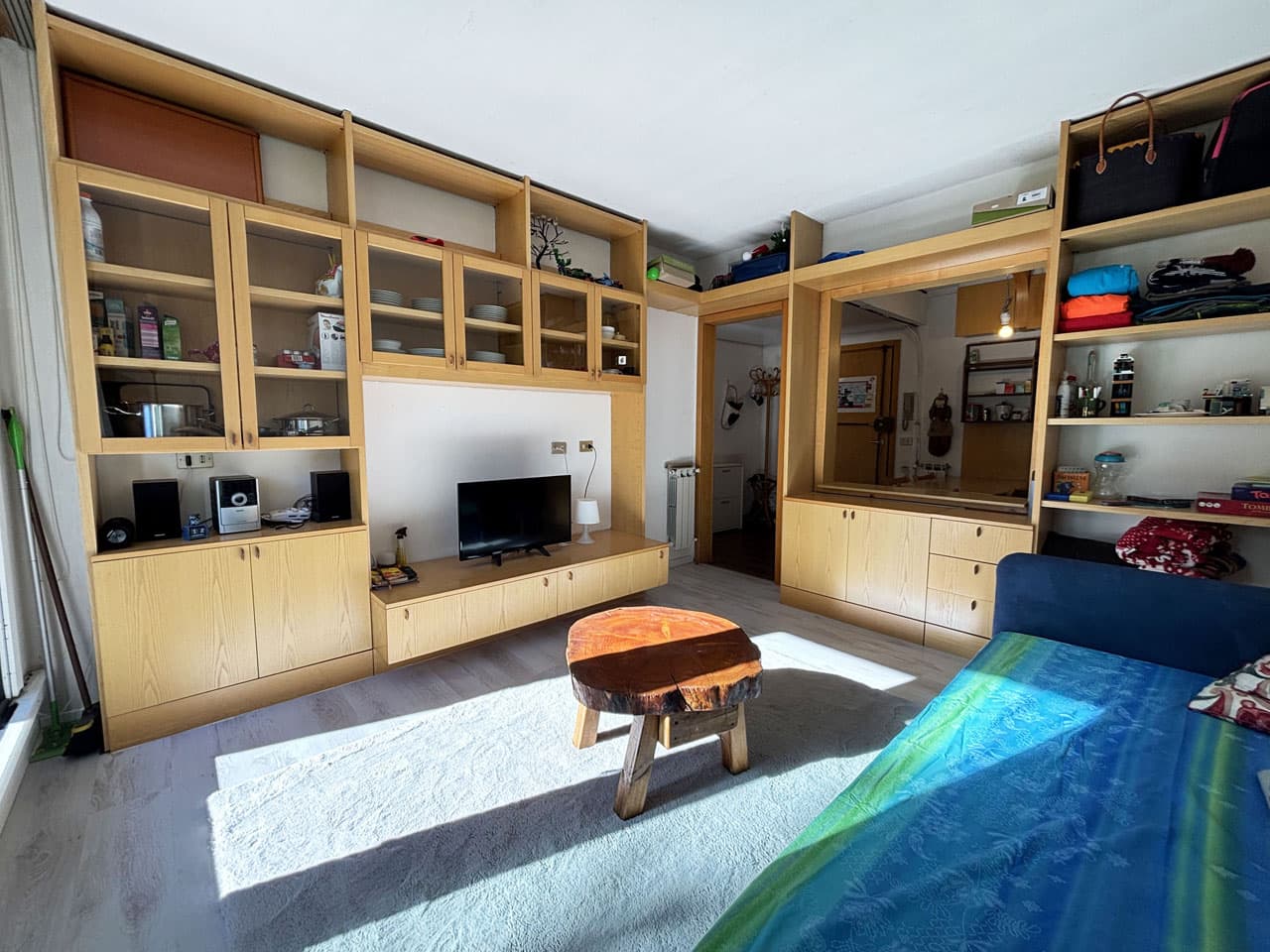 In posizione tranquilla e centrale, circondata da un'ampio giardino condominiale, luminoso alloggio al primo piano con ascensore, composto da: ingresso, soggiorno con accesso al balcone tramite ampia vetrata e dal quale si può godere di un'incantevole vista sulle montagne di Pragelato, cucina, cameretta, camera matrimoniale e servizio. L'appartamento è stato da poco ristrutturato nella pavimentazione, e sarà ceduto con l'attuale arredamento, molto funzionale e realizzato su misura (armadio con ante scorrevoli a specchio in camera da letto, letto a castello a scomparsa nella cameretta), e completo di elettrodomestici (lavastoviglie, piano cottura ad induzione, forno e frigorifero). Il riscaldamento adottato è il teleriscaldamento disponibile tutto l'anno. A completare la proprietà il box auto, nell'autorimessa sottostante.