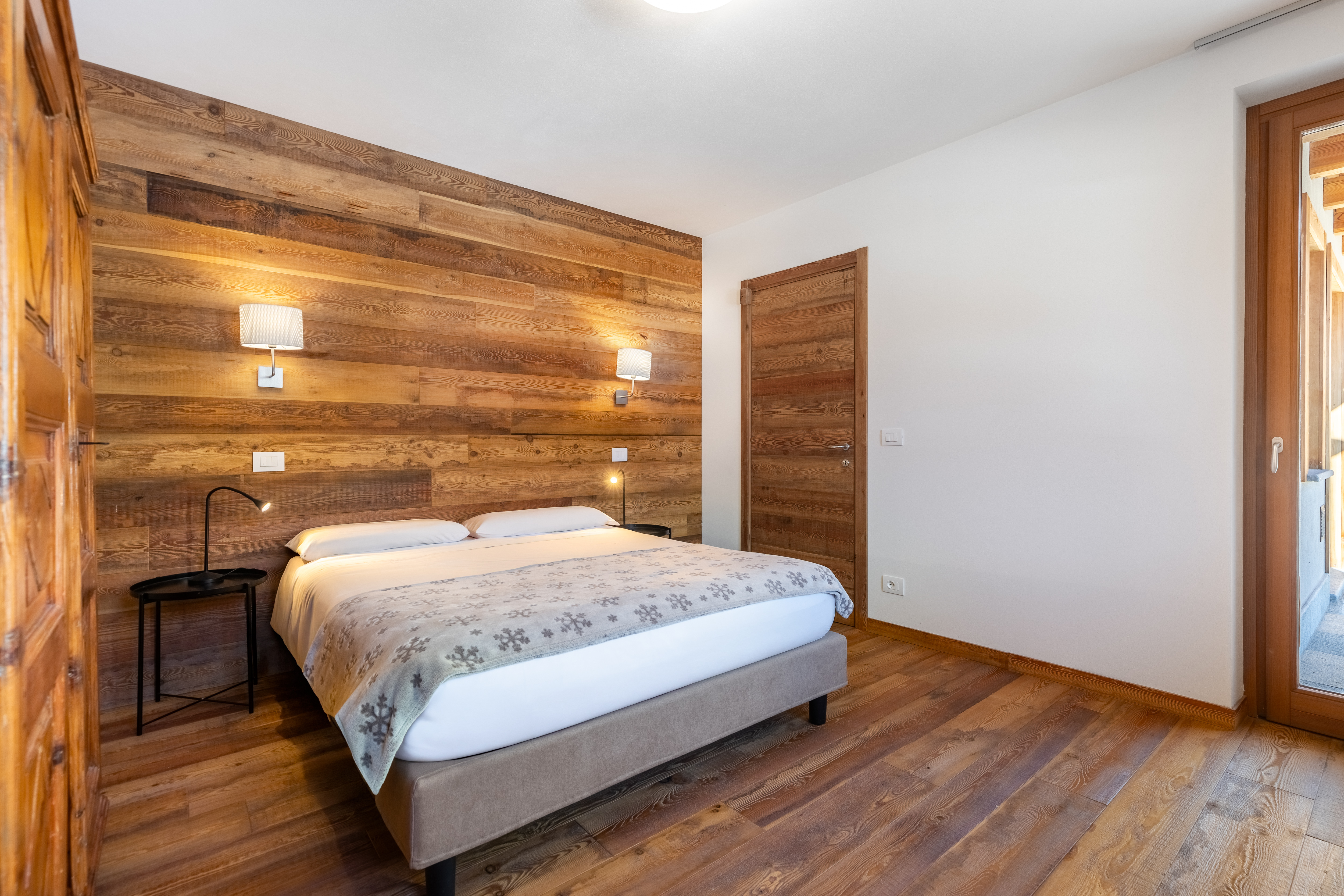 Tutti gli appartamenti conservano un fascino autentico, dove il calore del legno e i dettagli in stile alpino si fondono con la luce naturale e la bellezza del paesaggio così da renderli accoglienti e luminosi. Il parquet in tutti gli ambienti, le rifiniture di pregio creano ambienti caldi e confortevoli, grazie anche al riscaldamento a pavimento, con accensione a distanza, disponibile tutto l’anno,