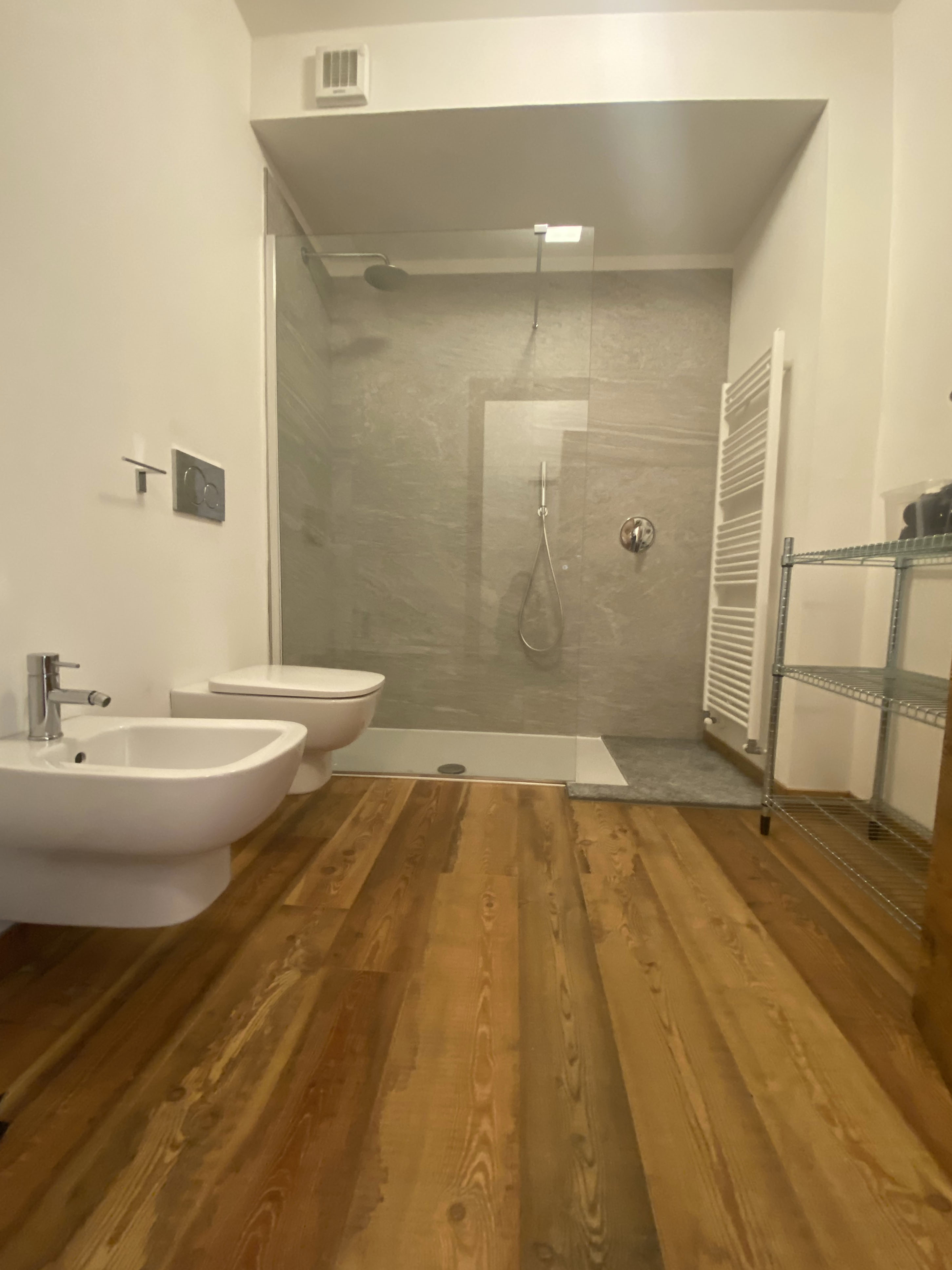 Completano l’alloggio un antibagno e un bagno ben rifinito, che uniscono praticità e comfort.